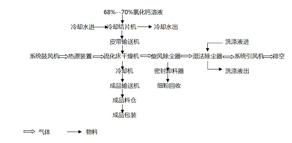 - 采用本工艺一机多产,可以根据需要生产出粒状74%氯化钙、77%氯化钙、无水氯化钙。